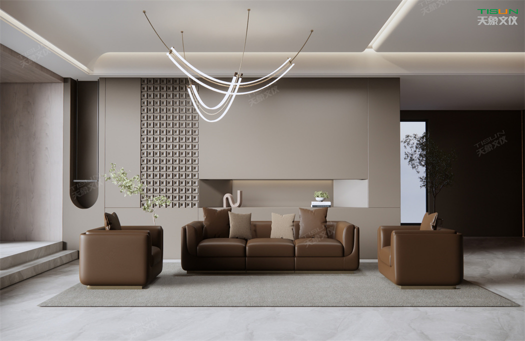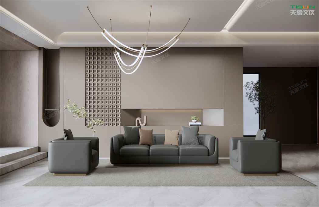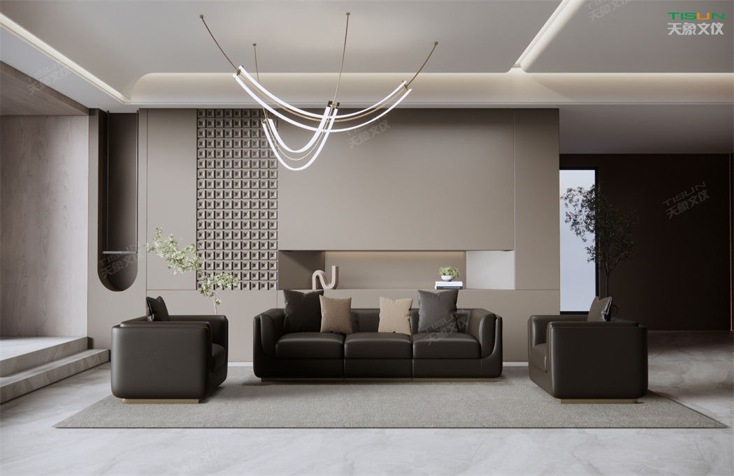 高級的辦公沙發(fā)在設(shè)計(jì)中運(yùn)用真皮材質(zhì)及考究的造型,體現(xiàn)主人對工作及生活的至高追求,同時(shí)凸顯辦公空間的高雅品質(zhì)。